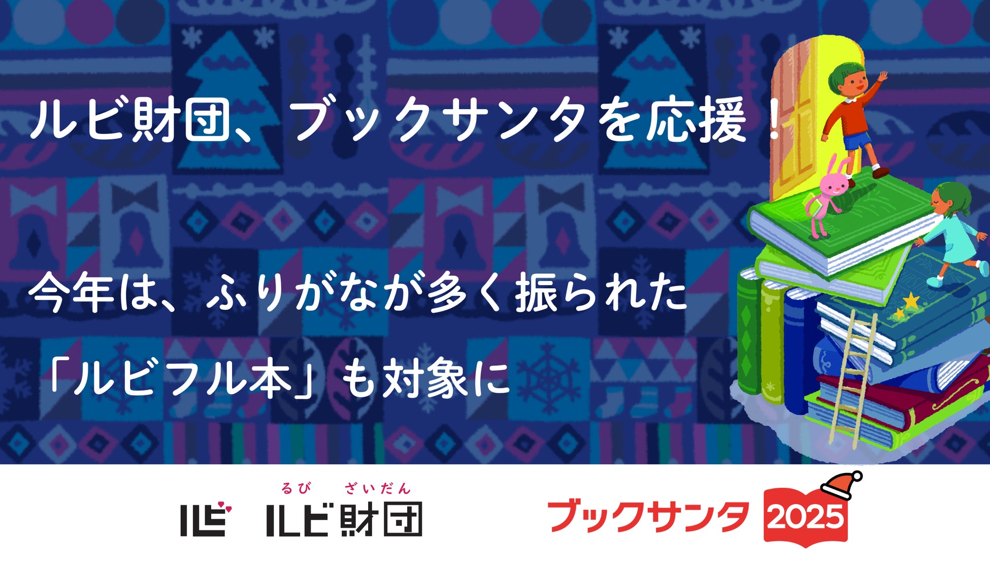一般財団法人ルビ財団(所在地:東京都港区、代表理事:伊藤 豊、以下ルビ財団)は、認定NPO法人チャリティーサンタ(所在地:東京都千代田区、代表理事:清輔 夏輝)が主催する、子どもたちに本を贈る社会貢献プロジェクト「ブックサンタ2025」をスポンサーとして応援します。