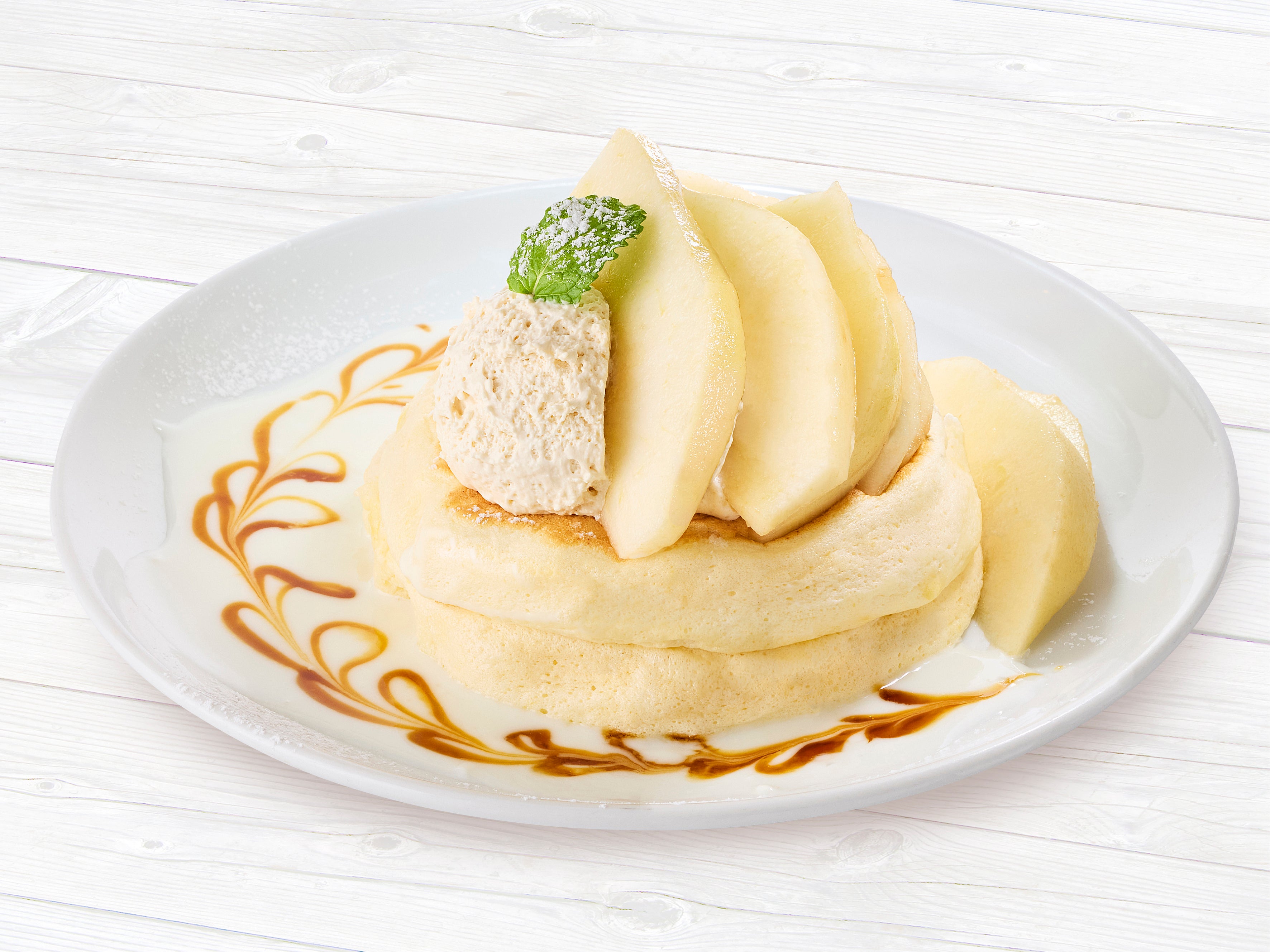 今年も「果物の女王」とうたわれる【ラ・フランスのリコッタパンケーキ】が期間限定で登場致します!山形県上山市でこだわり抜いて育てられた旬の洋梨「ラ・フランス」は芳醇な香りと上品な甘さが特徴。今年も相性抜群のキャラメルクリームとヨーグルトソースを添えて、とろけるような食感と共にお楽しみいただけます。また、焼いたものとフレッシュな2種類の「ラ・フランス」の味と食感が楽しめる「ラ・フランスのさっくりパイ」も登場!さらに今年は通常サイズの半分ぐらいのボリュームで楽しめるジャストサイズのパンケーキも新たに加わりました。※販売期間は11月6日(木)から12月中旬頃迄を予定。