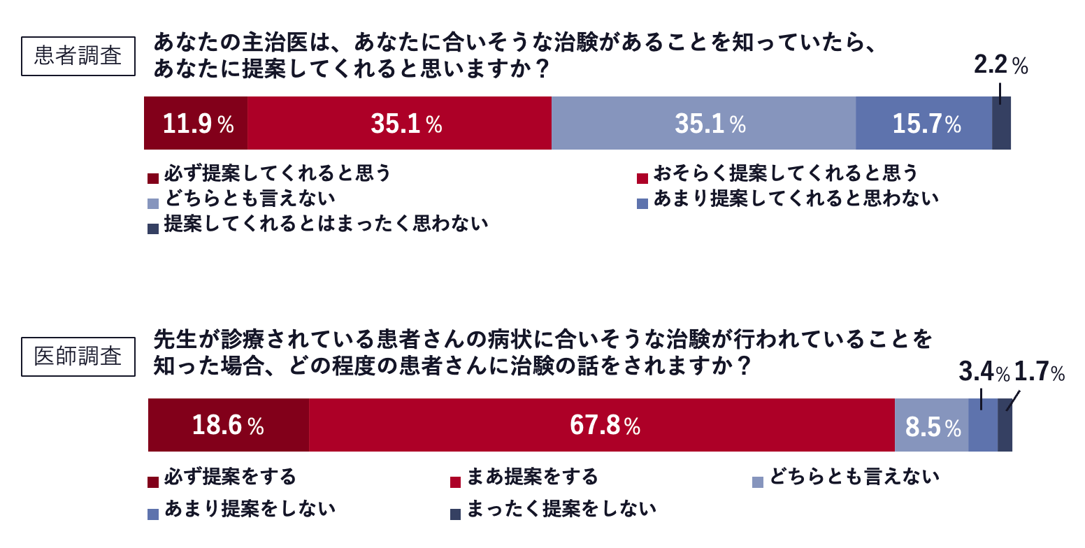 〈治験提案意欲の乖離:医師の提案意欲は患者の予想よりも遥かに高い〉