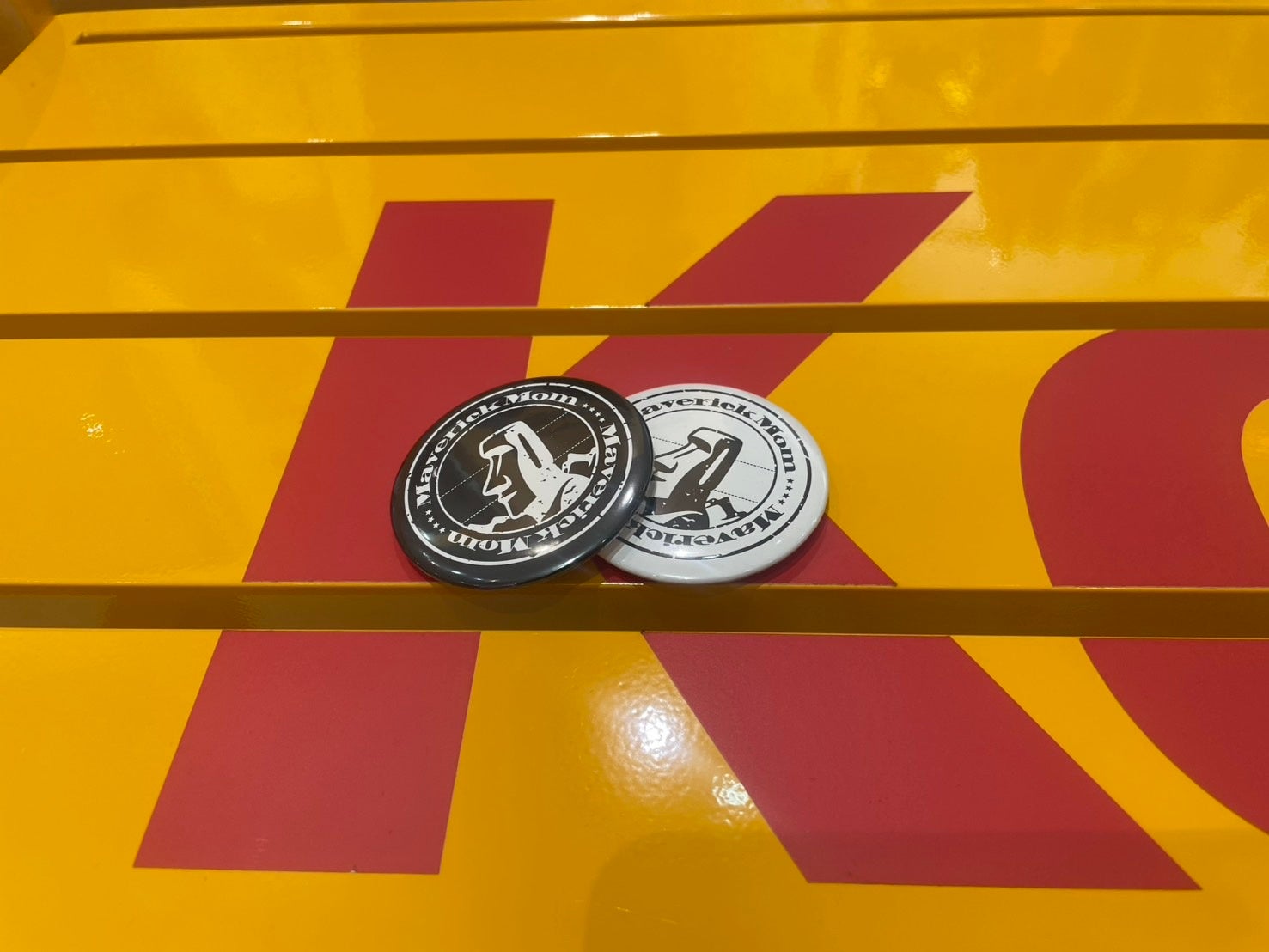 また、店頭ではMaverick Momのアーティストロゴをあしらった限定缶バッジを配布しています。