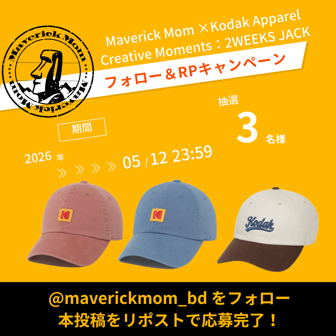 共同プロジェクトを記念して、Maverick Momの公式のXアカウントにて、本日よりフォロー&リポストキャンペーンを実施します。対象アカウントをフォローのうえ、該当投稿をリポストいただいた方の中から抽選で3名様にメンバーのサイン入りキャップをプレゼントいたします。