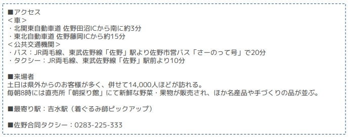 (3)場 所:道の駅どまんなかたぬま(栃木県佐野市吉永町366-2)