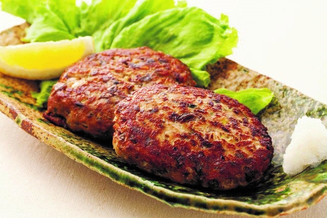 新鮮なさんまのすり身に、長ネギ・味噌・生姜をまぜて、ハンバーグ状にして焼いた