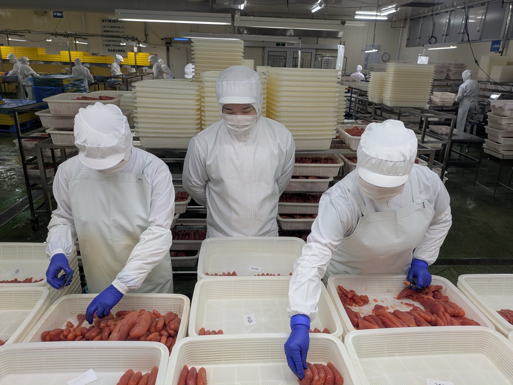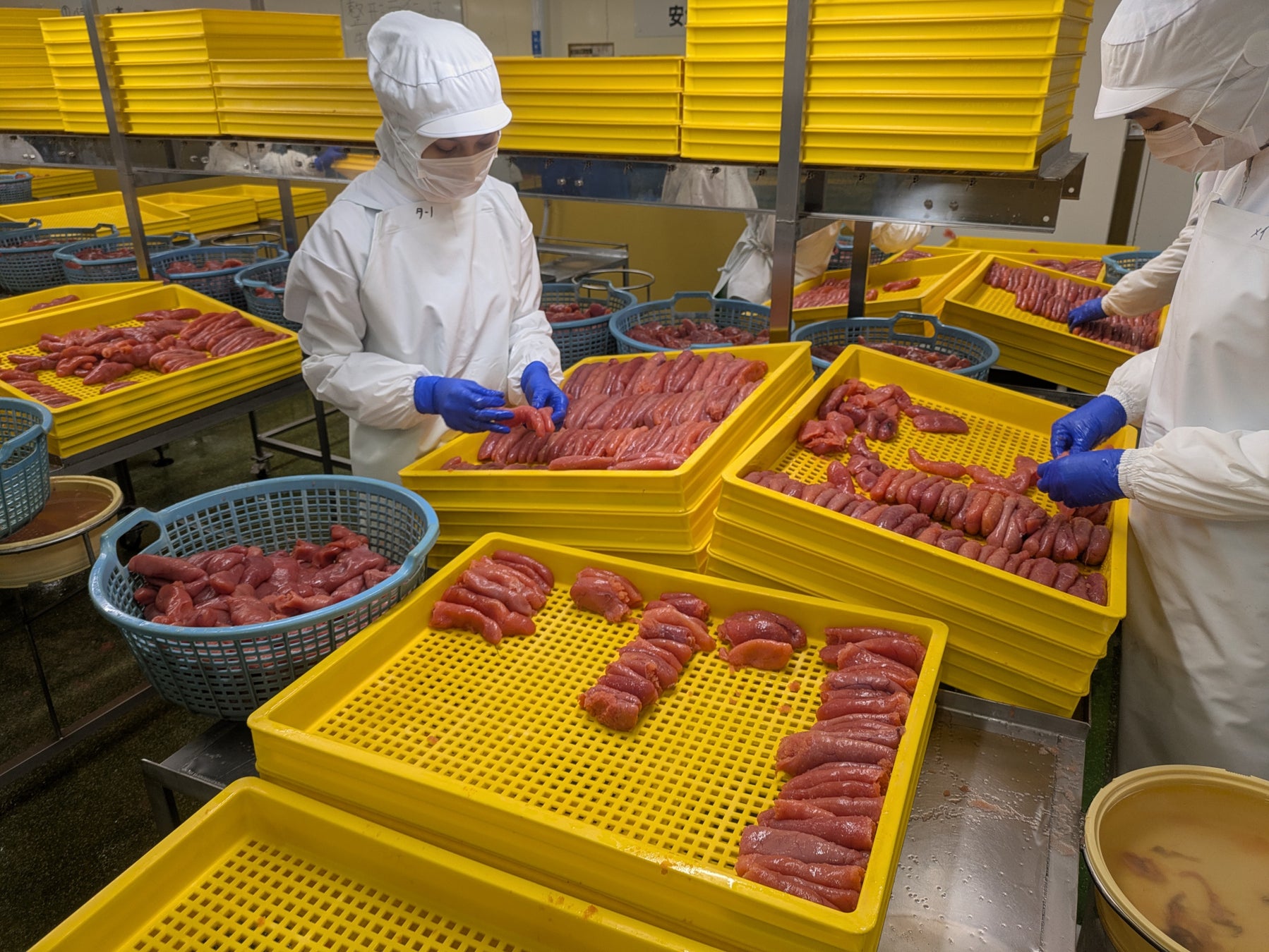 両社とも、たらこの原料であるスケソウダラの卵は、アメリカ・シアトルと韓国・釜山で買い付けています。注目すべきは「目利きの社員が現地に足を運ぶ」ということ。