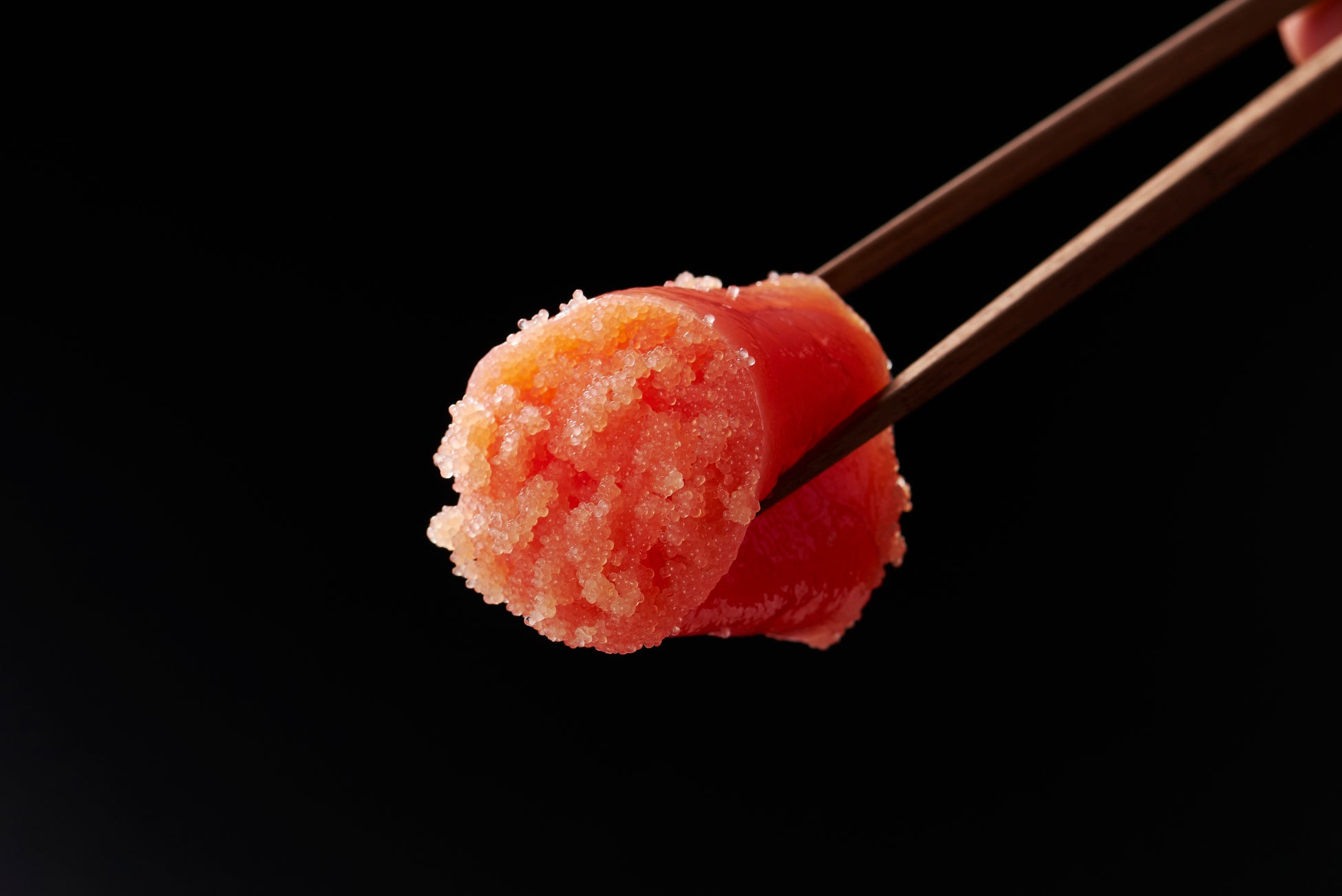 「寿司ネタにするなら、酢飯に合う味じゃなきゃダメ」。そこでたどり着いたのが、塩分を抑えた減塩たらこ。ところが、塩分が少ないと卵の粒が締まらず、仕上がりがぼやけてしまう。だからこそ、使える卵は“粒立ちがしっかりしている高品質なもの”に限られます。
