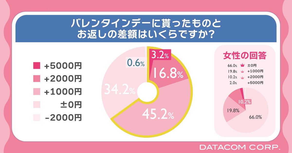 女性の約3割は理想とするお返しの差額で+1,000円以上の金額を回答しており、男性の見立てはあながち間違っていないと言えそうです。