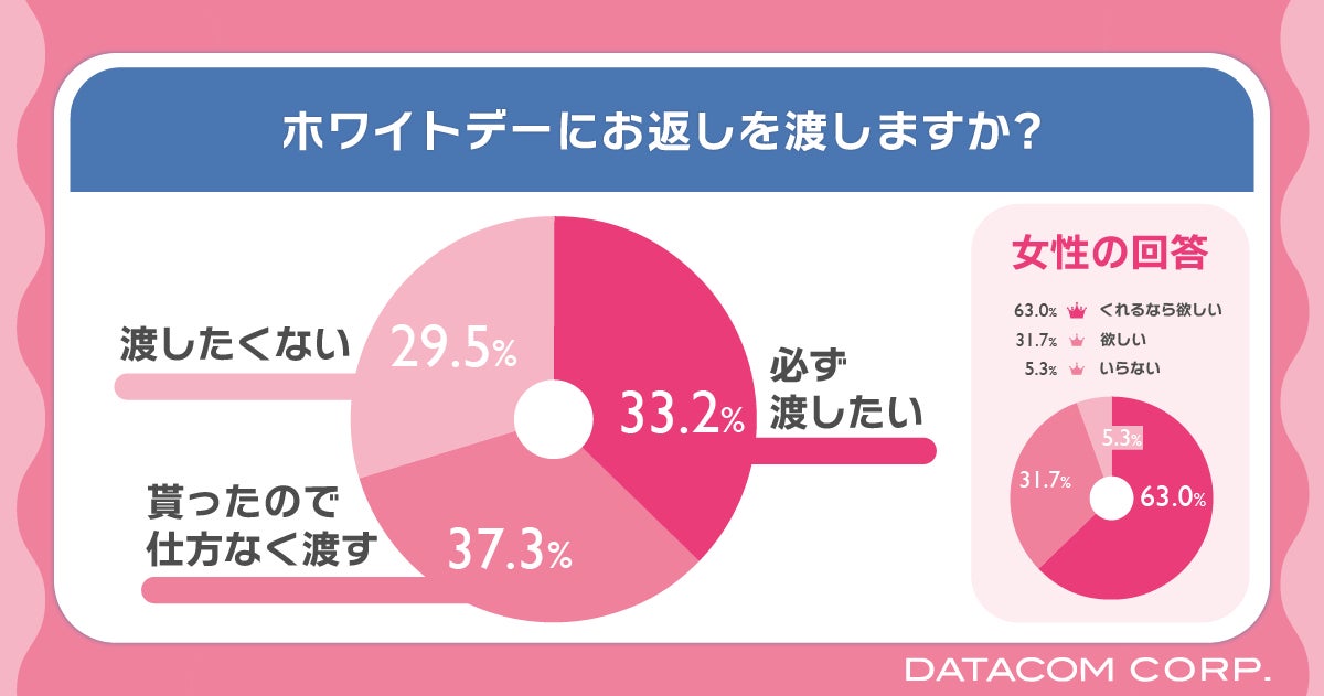 ホワイトデーにお返しを渡すか聞いたところ、29.5%の人が「渡したくない」と回答。