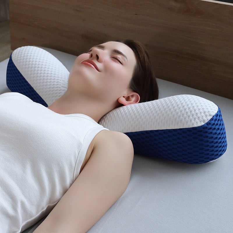 硬質ウレタンの芯をインサート成型して、BlueBlood3D体感ピロークラシックの質感はそのままに、首を支えることに特化した進化版枕です。首を中の芯がほどよく支えて自然なカーブにストレッチ。枕に頭を乗せると芯が入っているのか一見わからない程度に感じますが、首を圧迫しない程度に適度に支えて、沈み込みをうまく和らげる、縁の下の力持ちです。セットのアウターカバーはこの時期に嬉しい吸汗速乾&接触涼感機能性生地の「COOL&DRYくしゅくしゅカバー」。伸縮性が抜群なので装着もしやすく、一年中快適にご使用いただけます。
