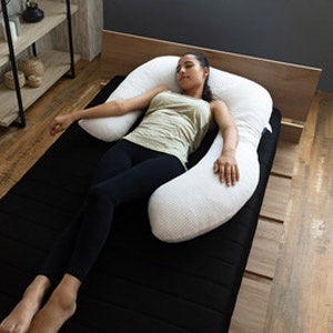 ハイブリッドGEL素材BlueBloodのチップと3種類の素材をMIXした、モチモチの質感の中にしっかりコシがある抱き心地です。身体に負担をかけず横向き寝を安定的に維持するための構造で、包まれる安心感を感じながらリラックスしてお休みいただけるハグピローです。また使いかたも色々で、就寝中だけでなく寛ぎタイムにもおすすめです。