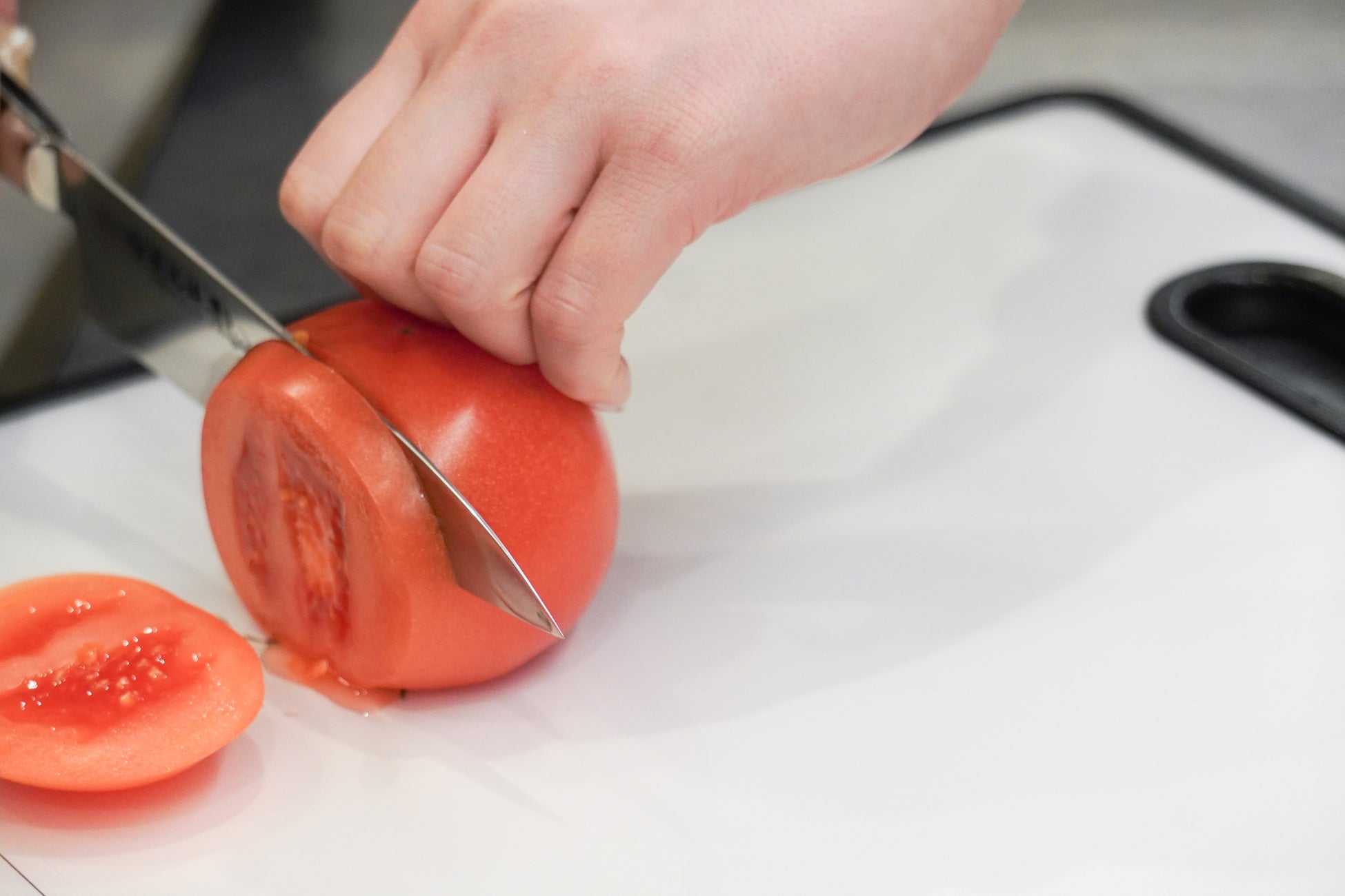 実際の越前打刃物を手に取り、100円ショップで売っている包丁と切れ味を比べてみました。刃の切れ味だけではなく、持った時の手の感触、刃と柄の重心のバランスなど、感じる違いを検証しました。