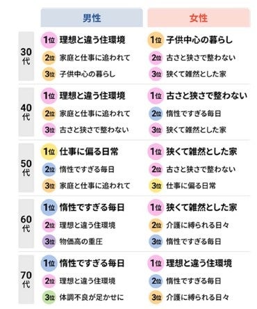 ・「家庭と仕事に追われて」が男性のみランクイン。家事・育児と仕事の両立における家庭内の責任と役割の課題が浮き彫りになった