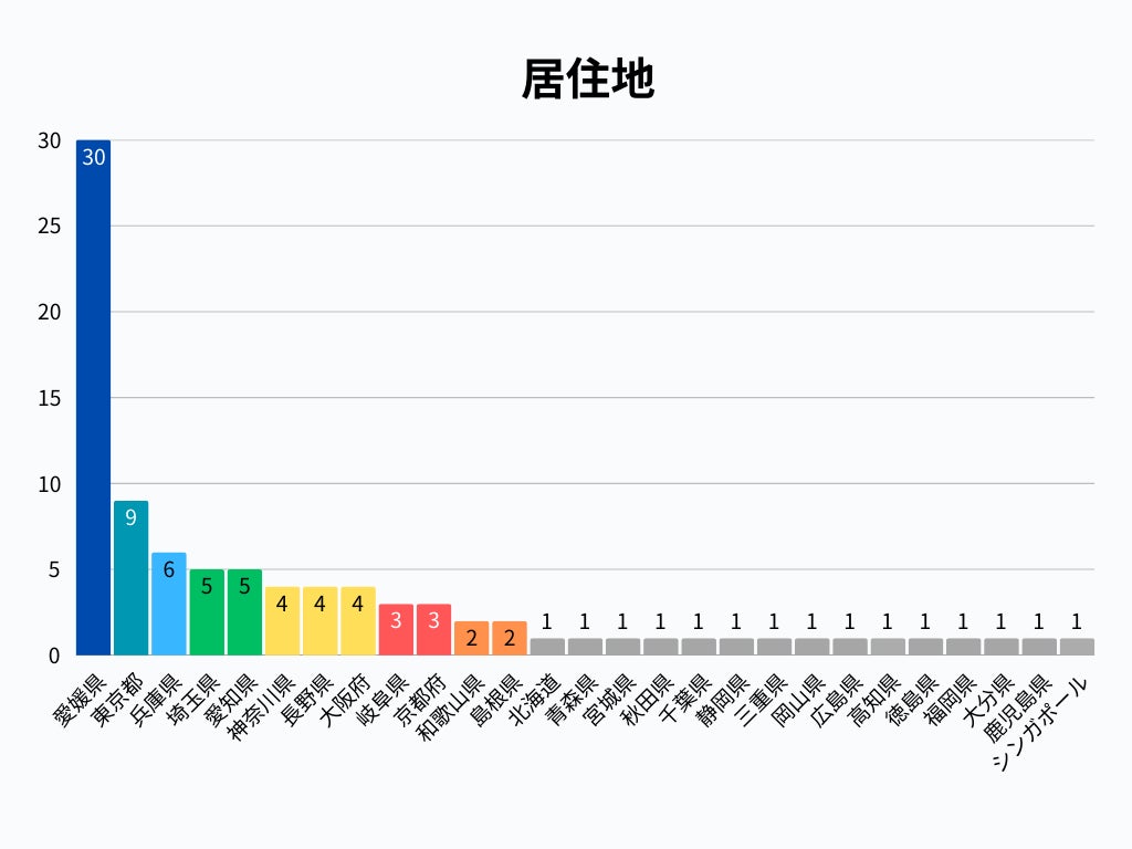また愛媛県内の内訳は、今治市が17名、松山市が6名、新居浜市2名、西条市1名、四国中央市1名、東温市1名、宇和島市1名、久万高原町1名でした。