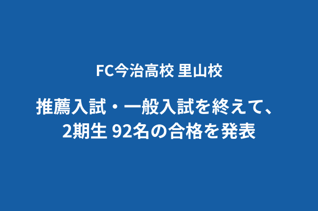 FC今治高校 里山校 推薦入試・一般入試を終えて、2期生 92名の合格を発表