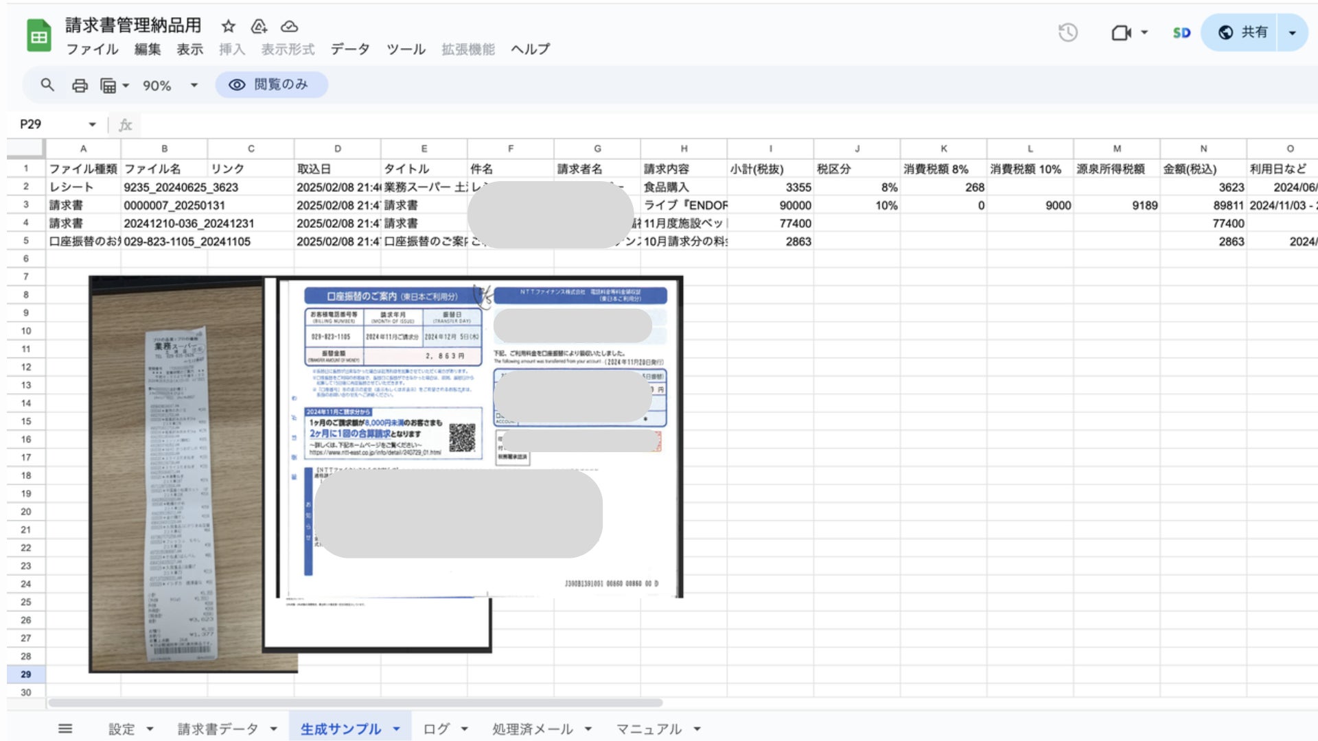 請求書やレシートの内容をOCRで読み取り、スプレッドシートにデータを自動入力するAIエージェントです。