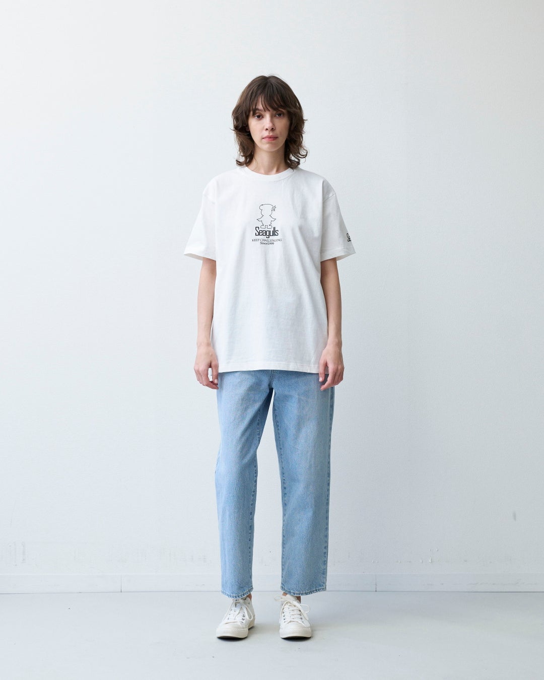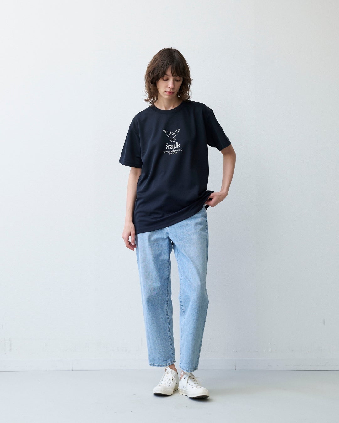いずれのカラーも前面中央部にシンプルなデザインのウィンディー(ナチュラルはキャラクター、ブラックはロゴ)を置き、左袖には『SEAGULLS』のロゴタイプをさり気なく配しています。