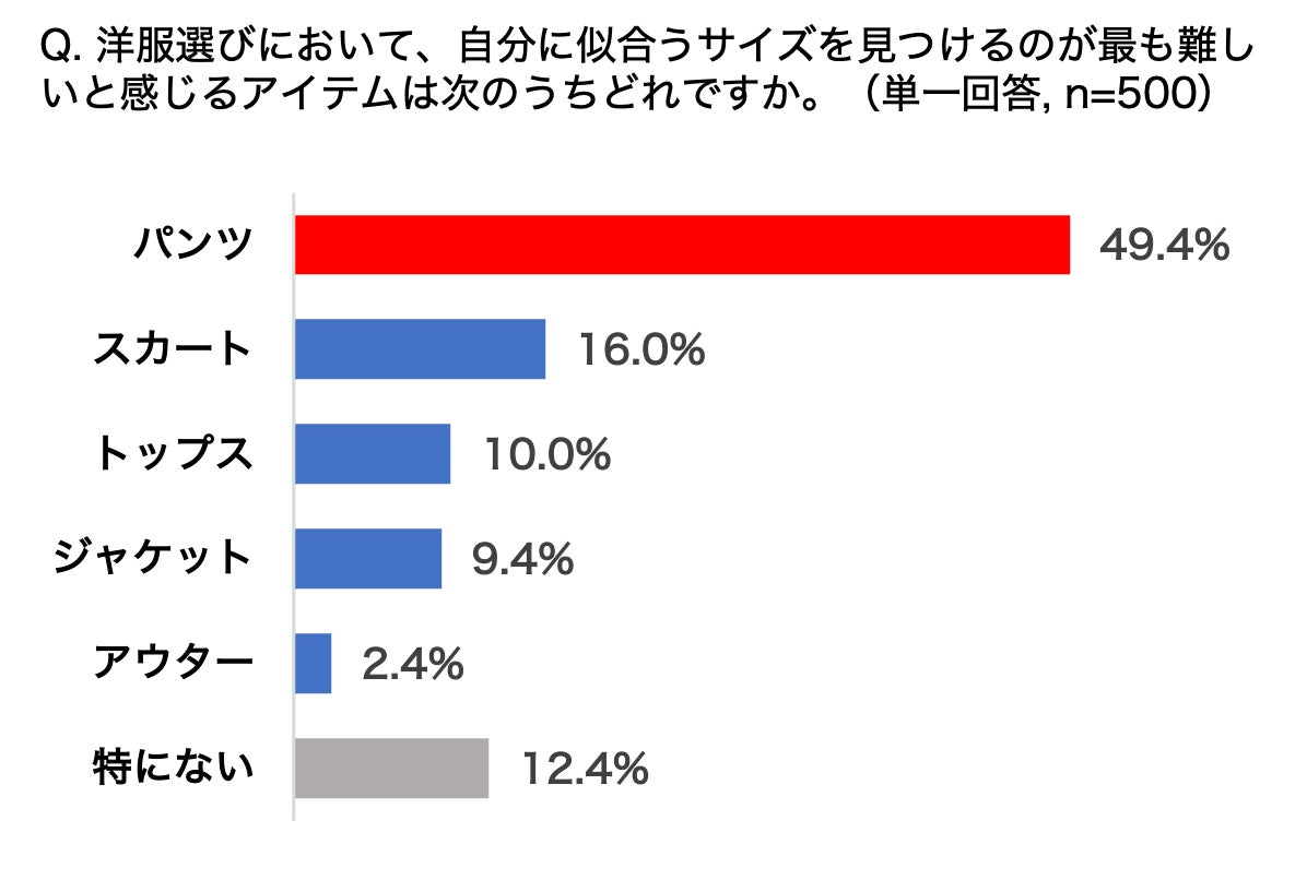 「パンツ」で、2人に1人がパンツのサイズ選びに悩んでいることが判明。