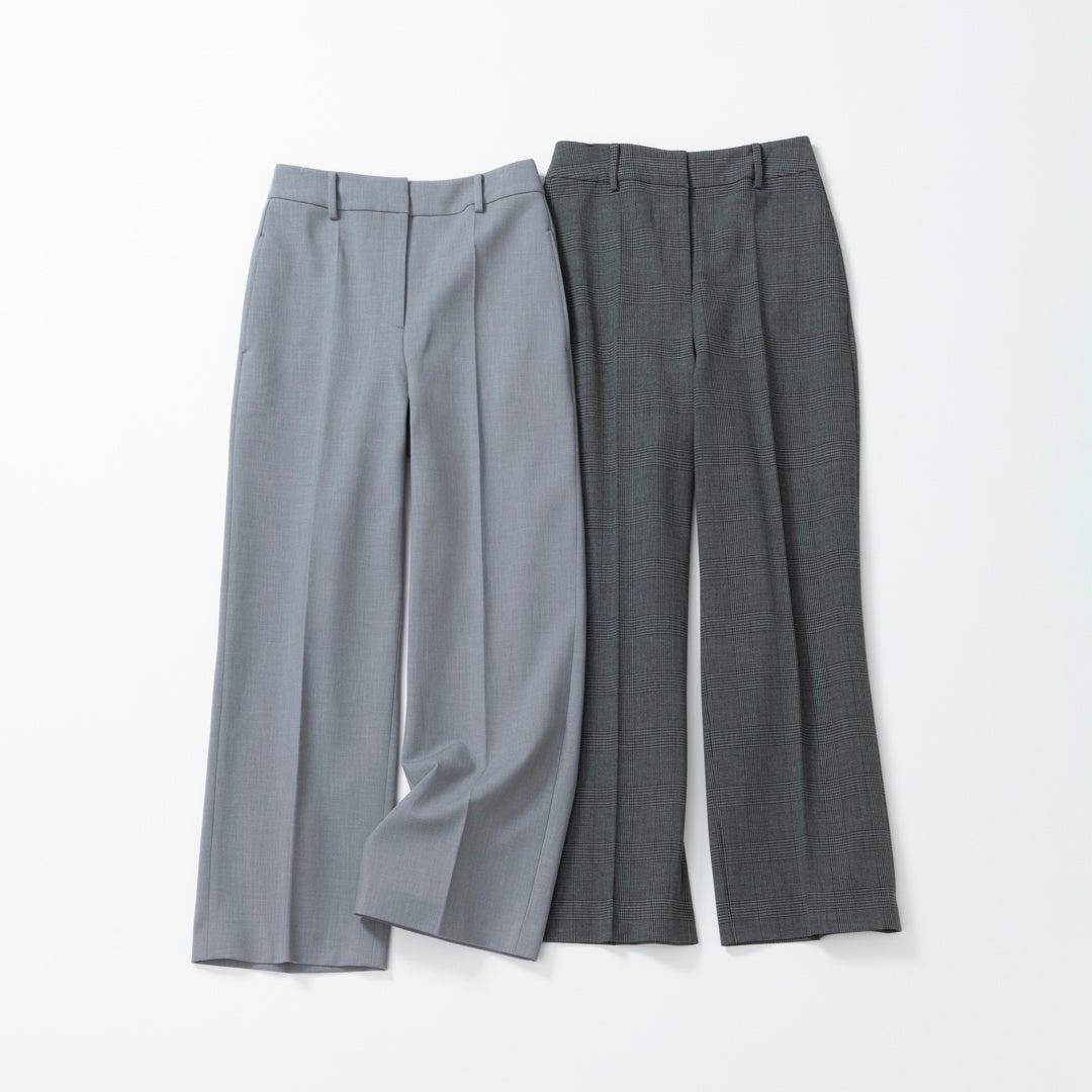 脚をスラリと見せるパターンと快適なはき心地を実現するストレッチ性、最適な一本が見つかる豊富なサイズ展開に自宅で洗える手軽さと、はくだけで美脚が叶うのが「PLUS STYLEパンツ」です。様々な素材やシルエットのバリエーションが揃っています。