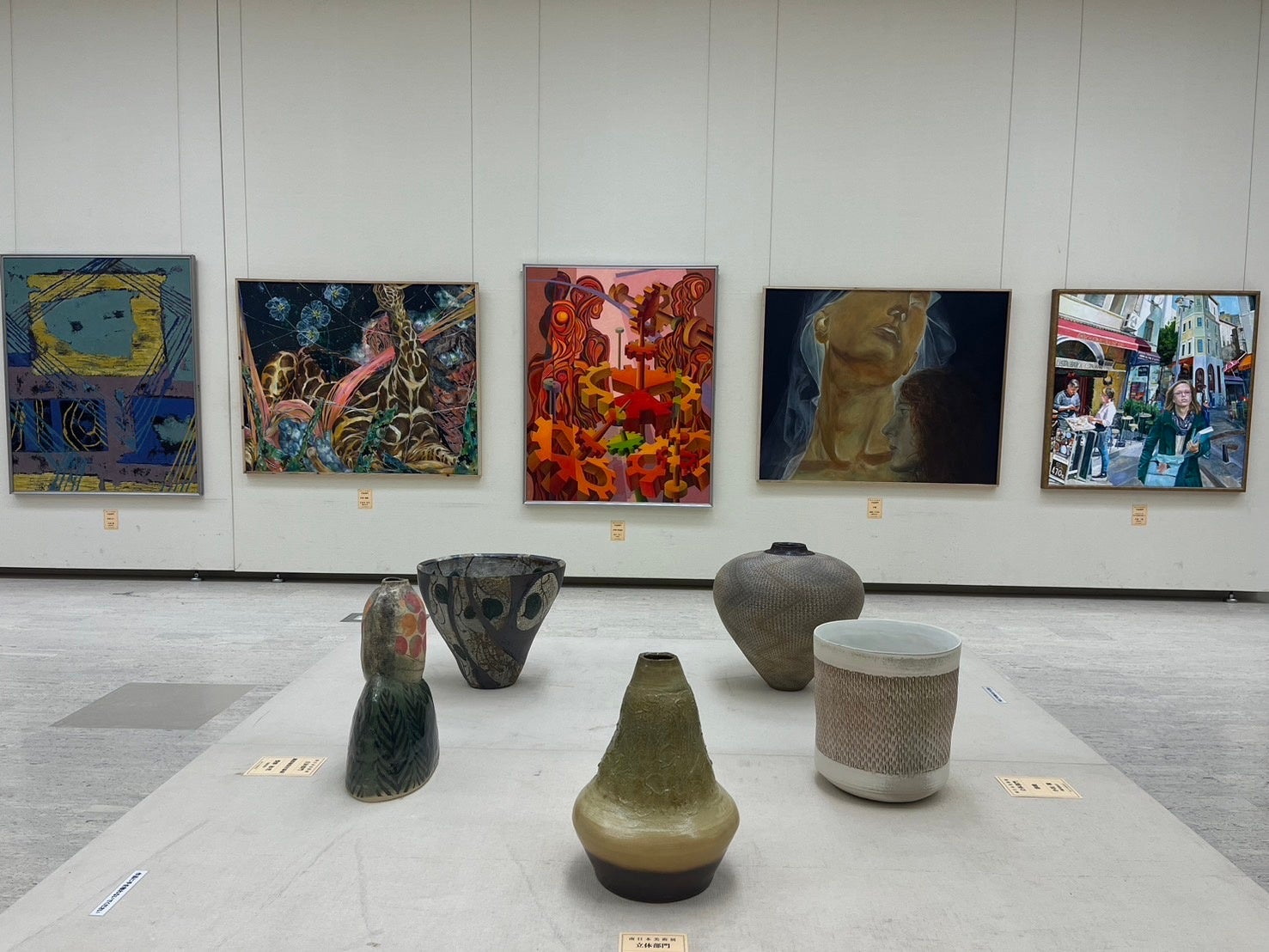 高校生からベテランまでの多彩な平面、立体2部門の入賞入選作202点に加えて、委嘱作家や審査委員の作品を加えた計237点を展示します。最高賞の南日本新聞社賞に輝いた鹿児島市の吉村英彦さんの平面「森羅万象」や、JAL賞を受賞した鹿児島市の徳田景さんの平面「暑中」など力作が並びます。