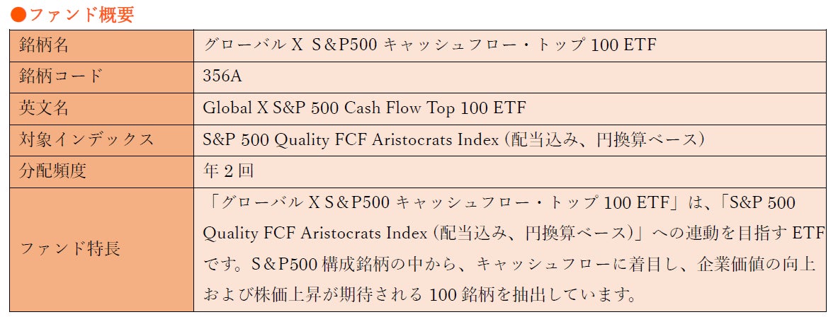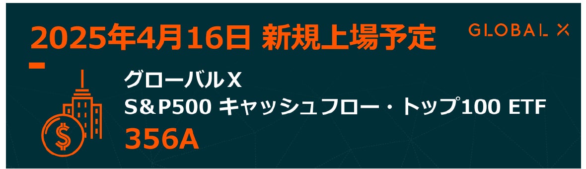 「グローバルX S&P500キャッシュフロー・トップ100 ETF」【356A】東京証券取引所より上場承認