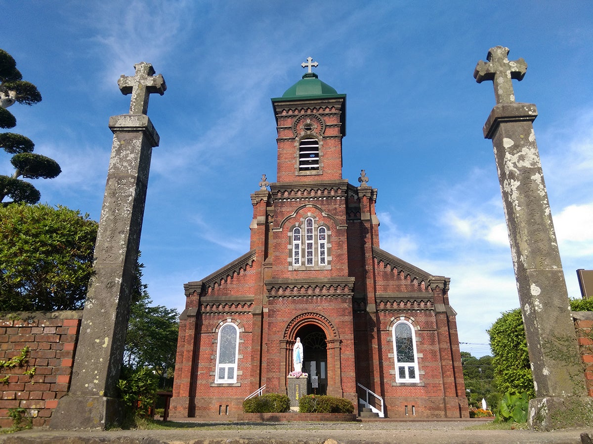 大正期に信者達よって建設された、荘厳な赤レンガづくりの教会。県内外の教会建築を数多く手がけた鉄川与助が手懸ける。国指定重要文化財。