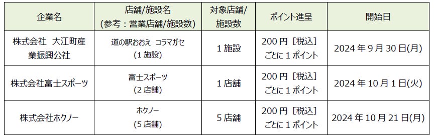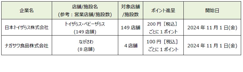 * 記載の店舗/施設数は、発表日現在の店舗/施設数となります。