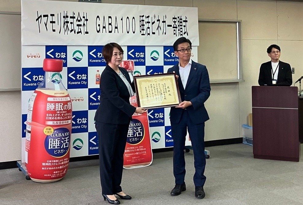総合食品メーカー、ヤマモリ株式会社は、桑名市と市内の睡眠課題解決に取り組むため、機能性表示食品「GABA100 睡活ビネガー」987本の寄贈や共同イベントの開催など、市民の睡眠への興味を持つきっかけづくりをサポートしています。