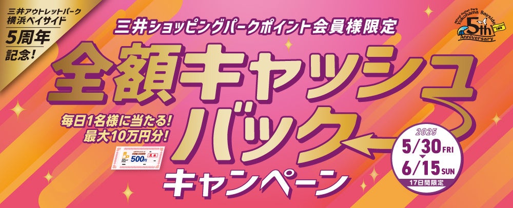 ・三井ショッピングパークポイント会員様限定 全額キャッシュバックキャンペーン(2025年5月30日(金)~6月15日(日))