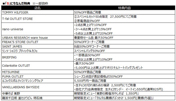 「Yokohama Bayside 5th Anniversary SALE」限定特典