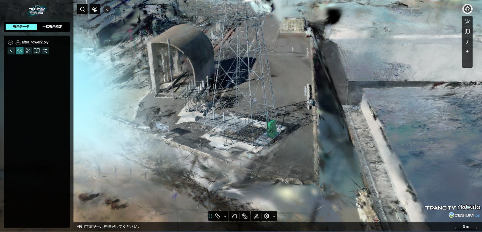 「TRANCITY Nebula」は、動画から3Dデータを自動生成し、WEBブラウザ上で時系列情報を組み合わせた4Dデータとして現場管理ができるデジタルツインプラットフォームです。