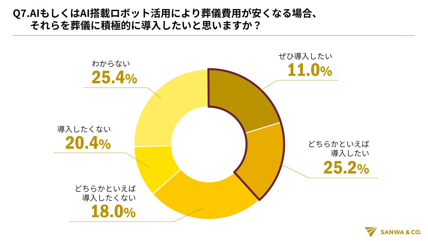 ・葬儀の費用が安くなる場合でも、AIを「導入したくない」(38.4%)が最も多い結果に。