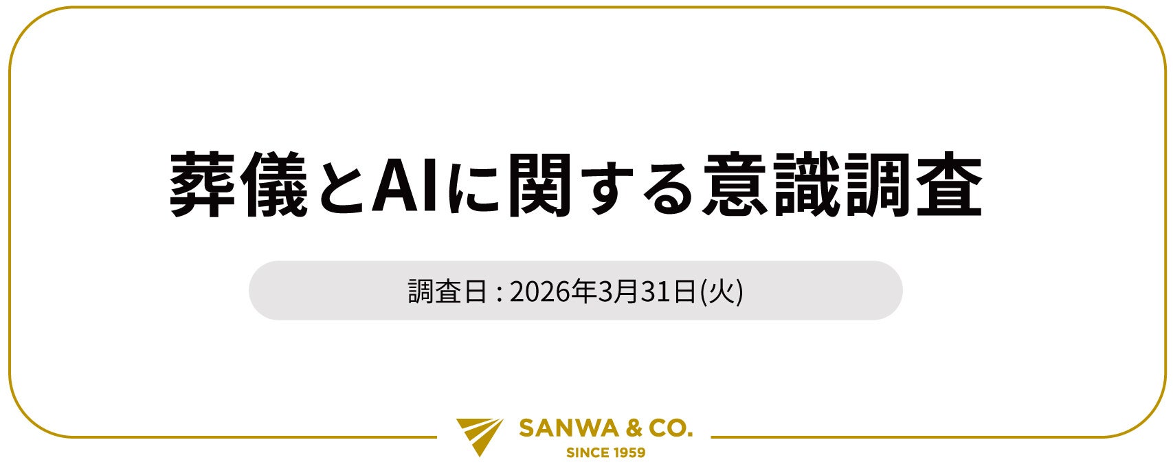 三和物産株式会社(本社:石川県金沢市、代表取締役:⻄河誠人)は、全国の15歳から87歳までの男女500名を対象にした「葬儀とAIに関する意識調査」を、2026年3月31日(火)に実施しましたので、その結果を公開します。