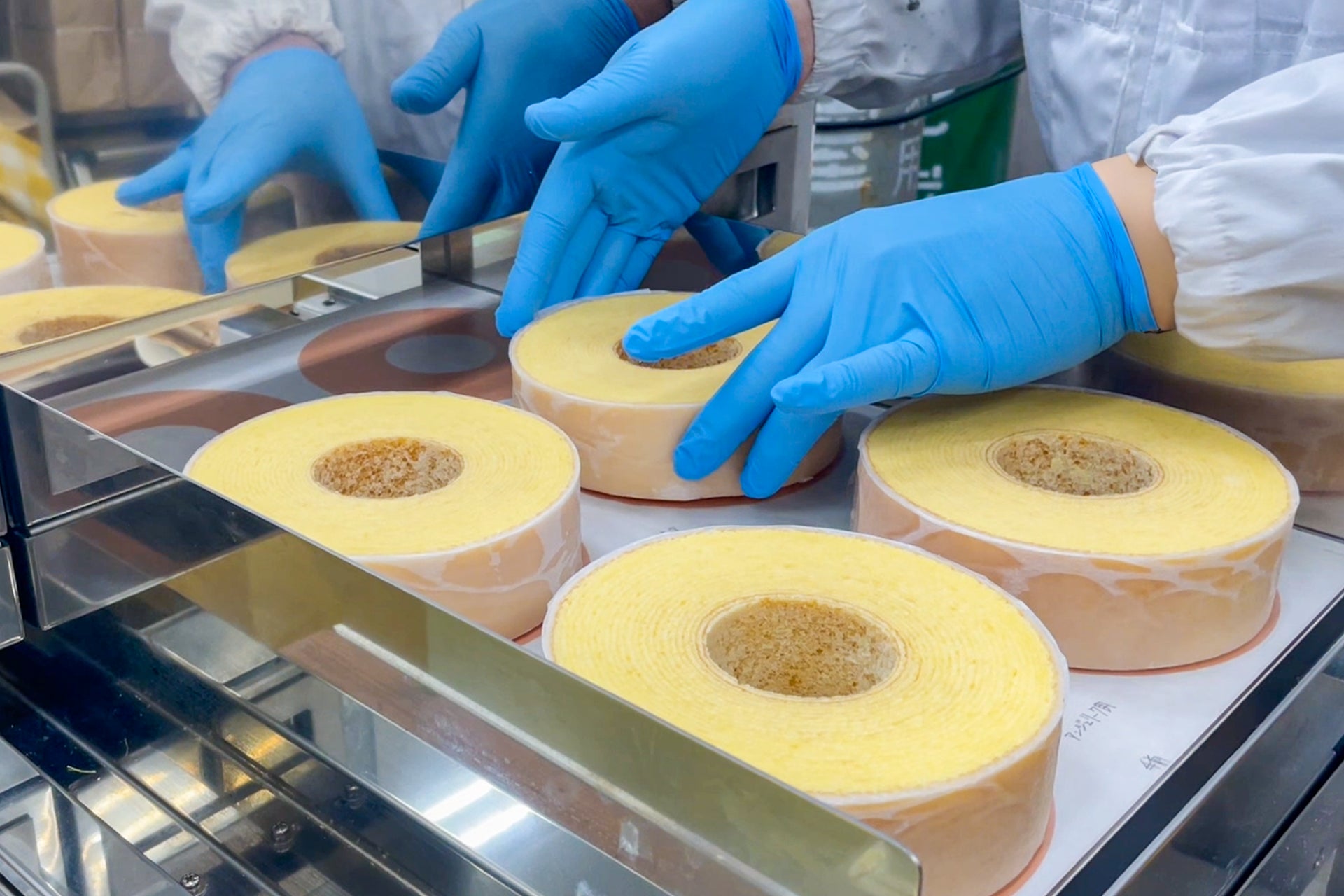 小麦粉を一切使用せず、千葉県産米粉を100%使用したしっとりもっちり食感が大人気の米粉バウムクーヘン「アンジェリーク」。年齢を問わず楽しめる味わいです。