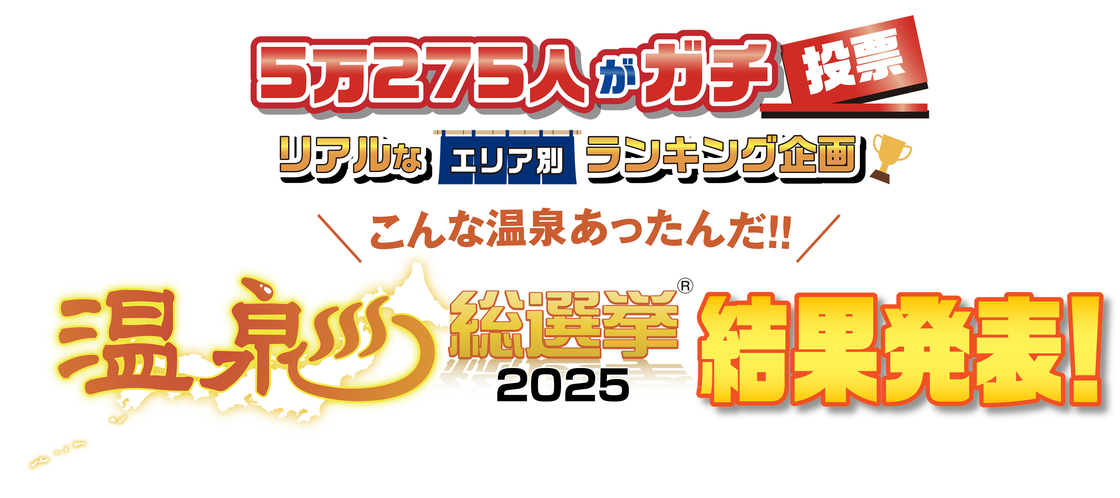 5万人以上の温泉好きの方々が応援投票した結果は、「温泉総選挙2025」サイトにて全国 部門別ランキングとエリア別 部門ランキングを発表しております、是非WEBサイトにてご確認ください。