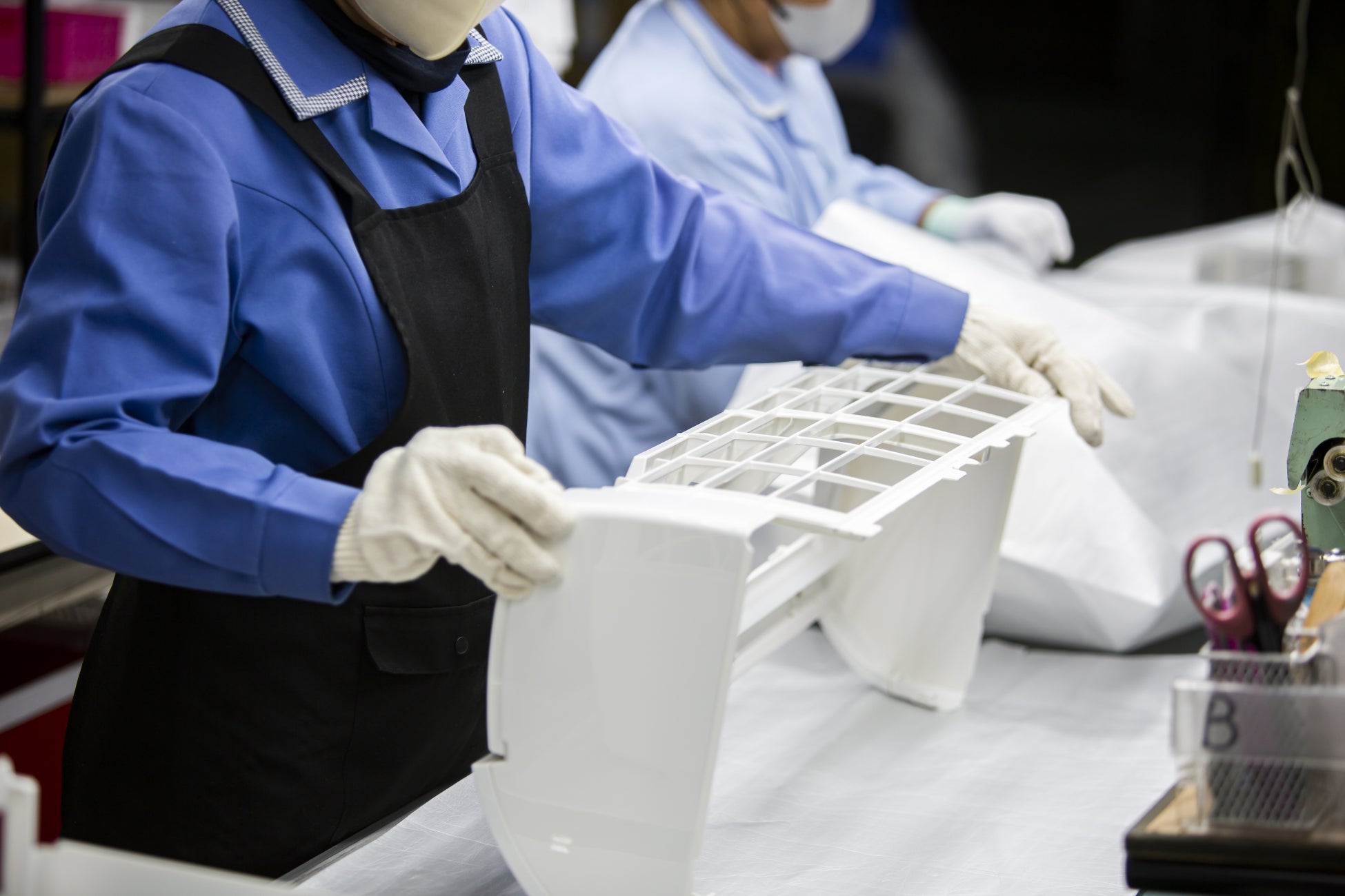 大型プラスチックを中心に家電部品を製造。エアコンや冷蔵庫に使われるプラスチック部品をつくる工場。