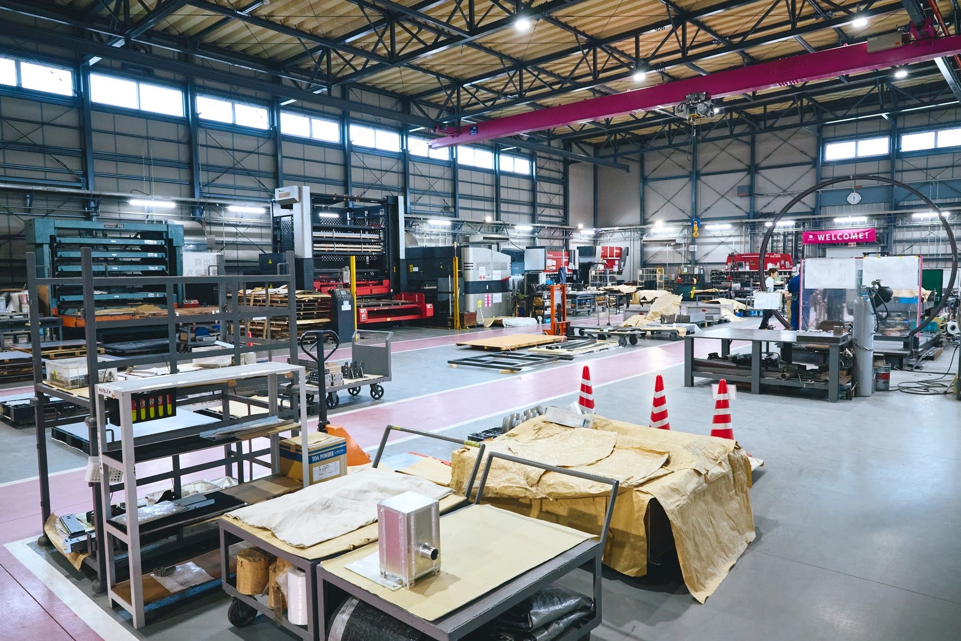 柱や梁がどのように加工されているか、床の材料がどのように製造されているかを間近に見ることができます。