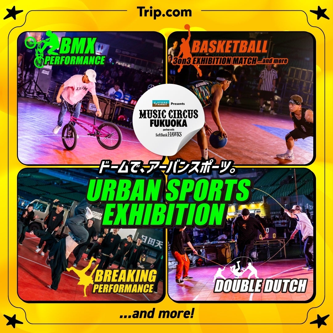 みずほPayPayドームで、音楽を中心に、ファッション、グルメ、スポーツなど、さまざまなコンテンツが楽しめるオールナイト音楽フェスティバル。今回のスポーツコンテンツ「URBAN SPORTS EXHIBITION」は、東京2020オリンピックで正式種目となり話題を集めた3人制バスケットボールやBMXなど、プロによる圧巻のパフォーマンスを間近でご覧ください!
