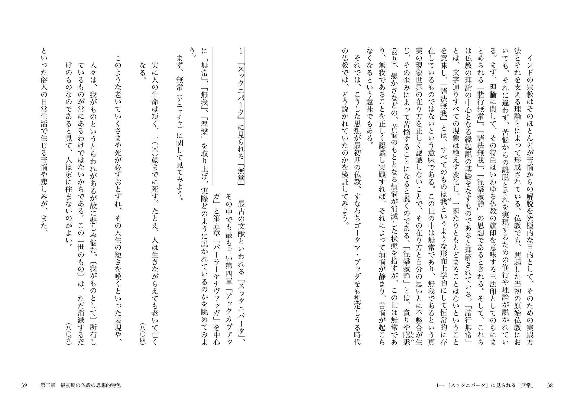 この本の魅力は、先行研究を踏まえながら、多数の初期経典を読み込んで提示される緻密な論証にあります。論述を一つ一つ積み上げていくように著すことで、初学者でも理解できるようなつくりになっています。