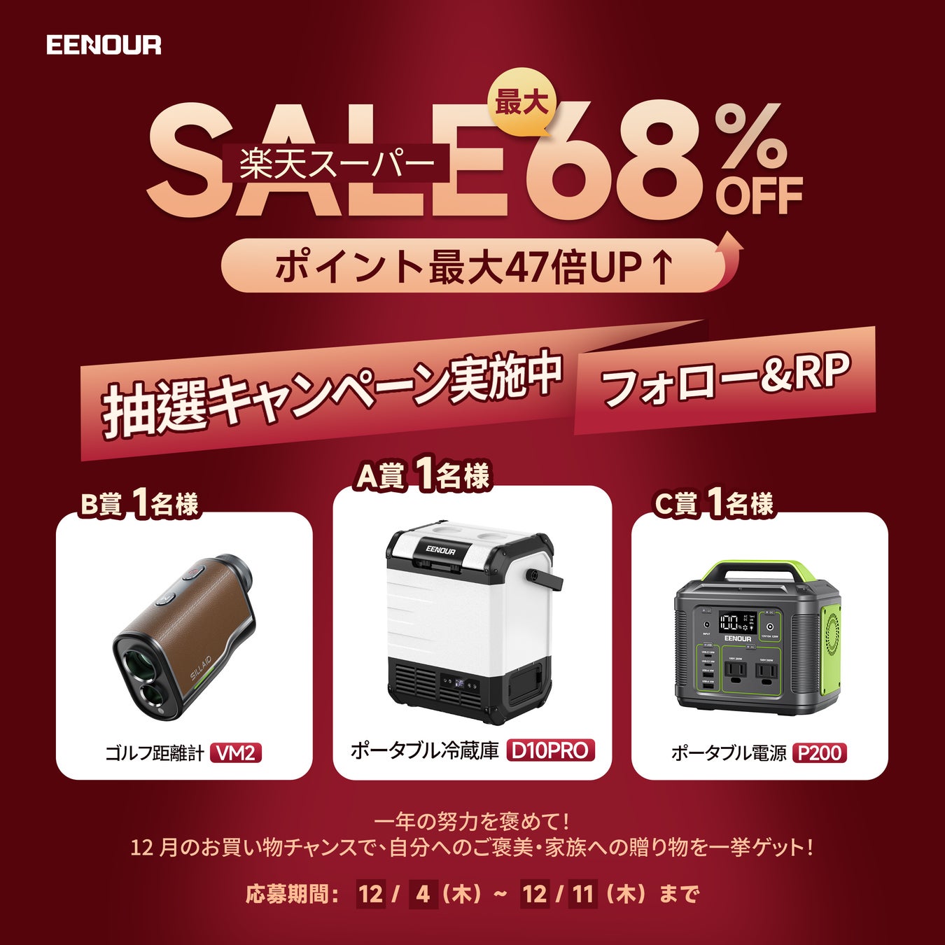 アウトドアおよび防災関連の製品を提供する人気ブランドEENOUR(イーノウ)は、楽天市場店と公式楽天市場店において、「楽天スーパーSALE」を12月4日(木)~12月11日(木)まで実施いたします。