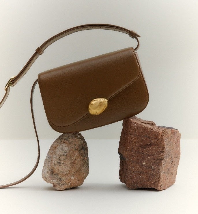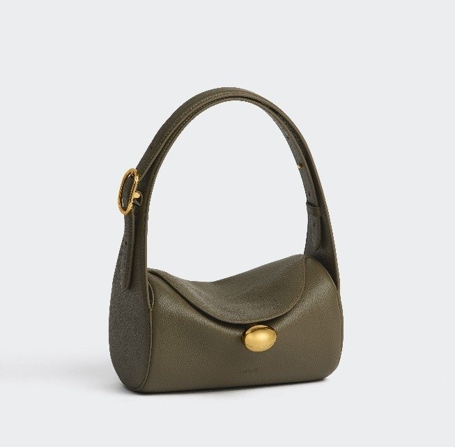 暗すぎず、鮮やかすぎない絶妙なトーンは、自然の安定感を感じさせ、Cafunéのシグネチャー金具やエッグチャームが持つ彫刻的な美しさをより一層引き立てます。