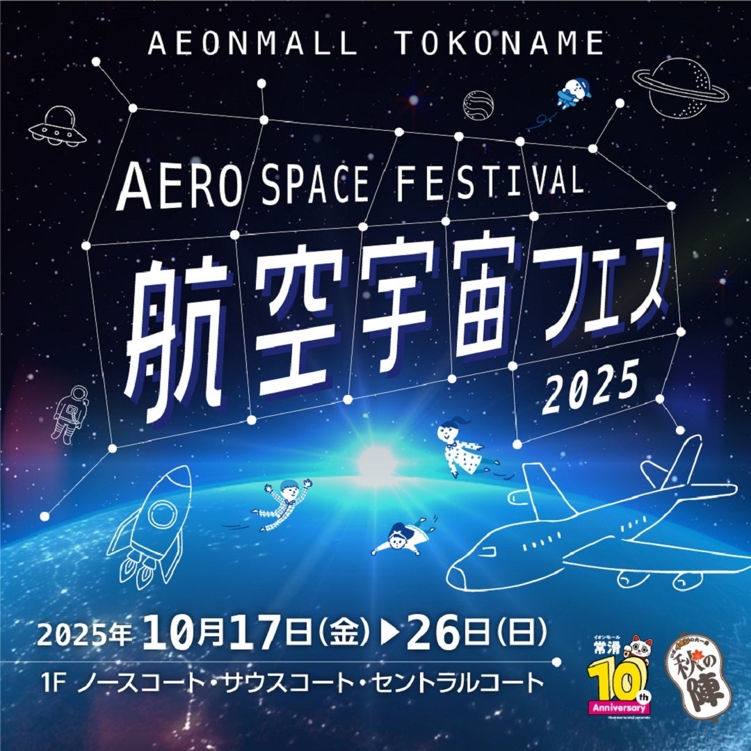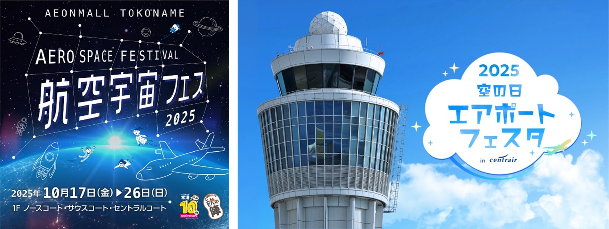 イオンモール常滑では、「航空宇宙フェスin イオンモール常滑」を10月17日(金)~26日(日)に、中部国際空港セントレアでは「空の日エアポートフェスタinセントレア2025」を10月25日(土)に開催します。