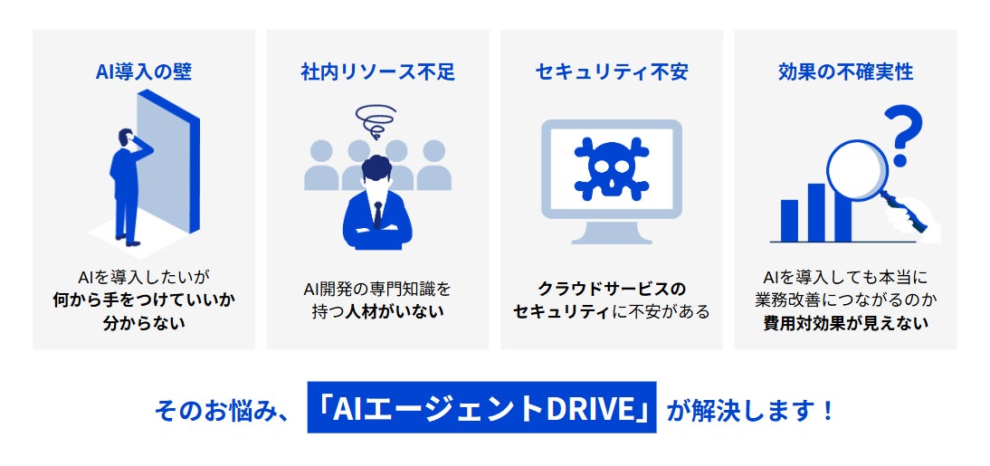 こうした課題を解決するため、当社はDifyを活用し、企画から開発、効果検証、運用までをワンストップで伴走支援する「AIエージェントDRIVE」の提供開始をいたしました。