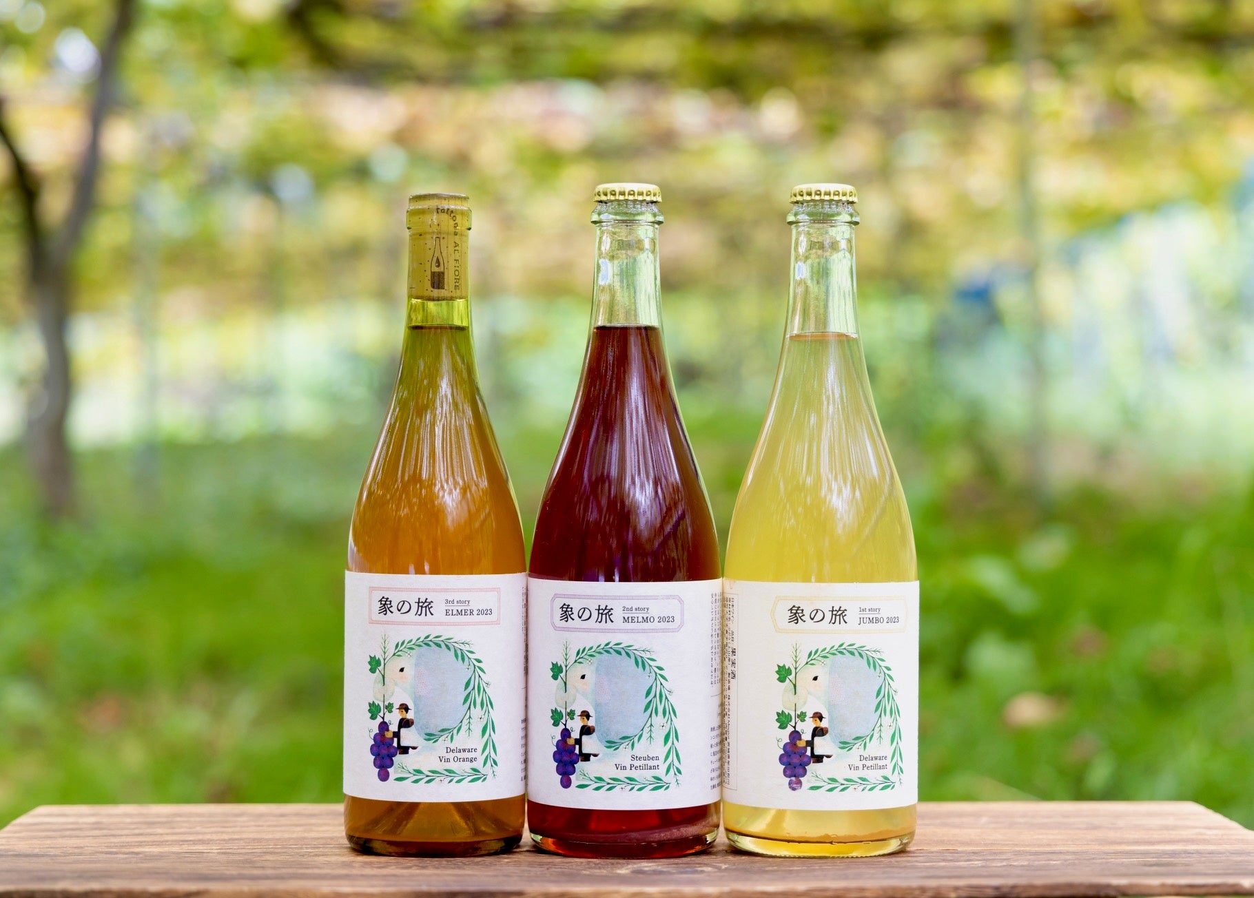 農家が減少する中、耕作放棄地を復活させたいという想いから、一人で様々な困難に立ち向かいながら作った葡萄で作ったワインになります。極力自然に育てたいという理念から減農薬で栽培しており、ワイン醸造は葡萄以外一切無添加の自然派ワインです。象の旅という物語形式にしており、ワインボトル1本づつに旅人が体験したストーリーを掲載しております。