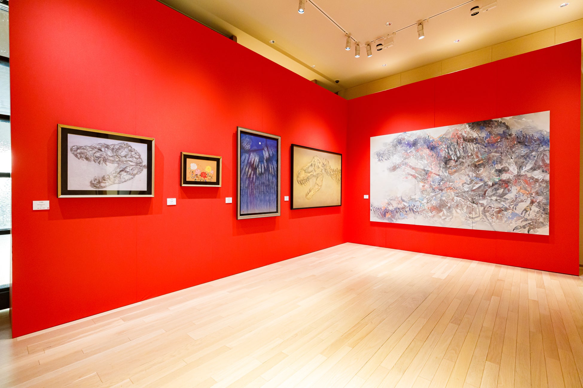 会場に飾られた計16点の「日本画」作品を前に、東京藝術大学「第3回ADワークスグループ『日本画』賞」の受賞者である山田 雄貴氏、平良 志季氏に在廊いただきました。迫力ある作品の展示は来場者からも大変ご好評いただきました。