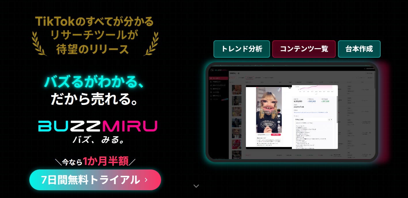 * 事業内容:TikTok分析ツール「BUZZMIRU」の開発・提供、Webマーケティング事業