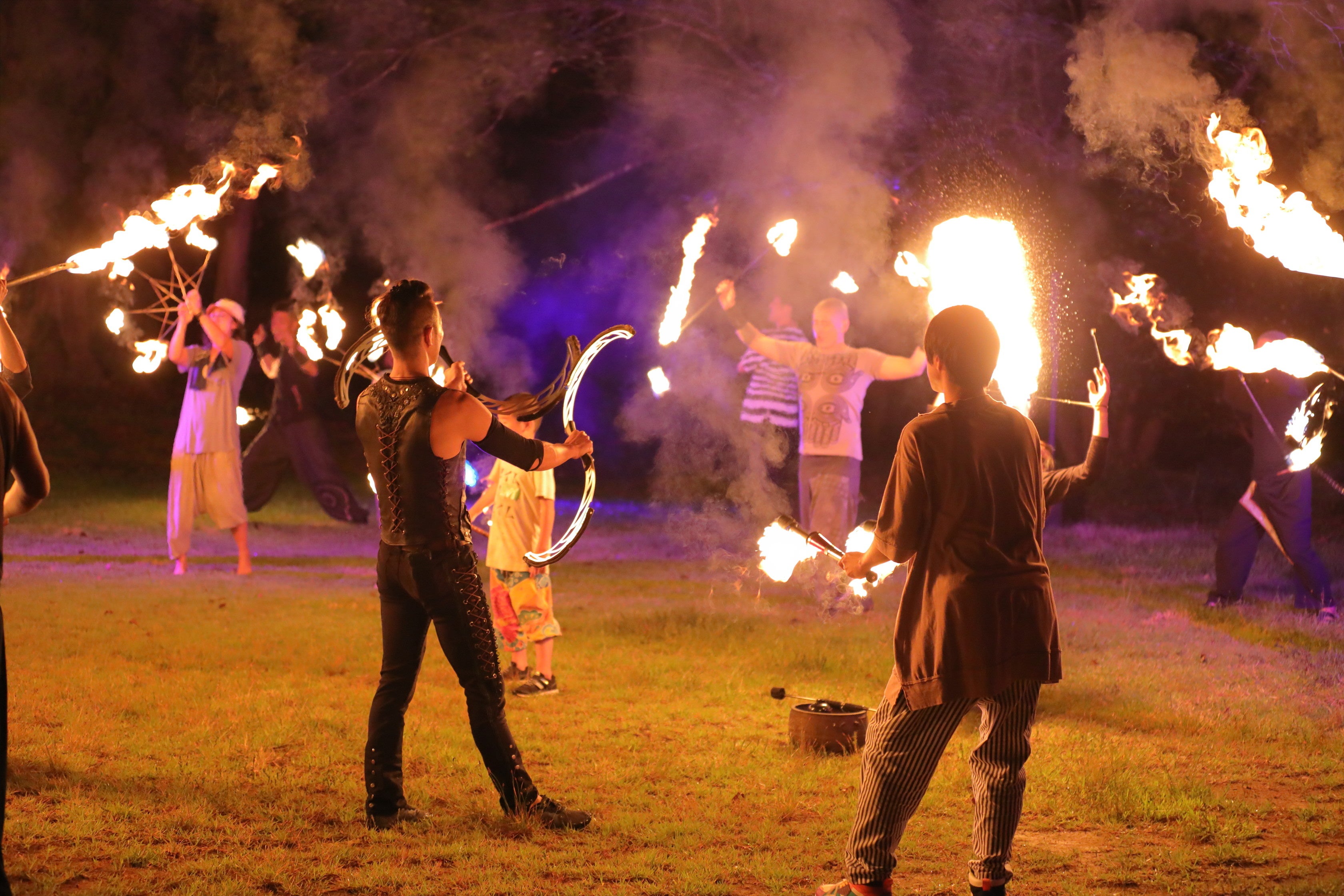 夜にはトップパフォーマーたちによる大迫力のファイヤーショーが開催されるほか、参加者同士が安全にパフォーマンスを楽しめるファイヤーエリアの開放、広大なグラウンドでのキャンプインなど、大自然とノスタルジックな木造校舎に囲まれた非日常の空間で、濃密なエンターテインメント体験を提供いたします。