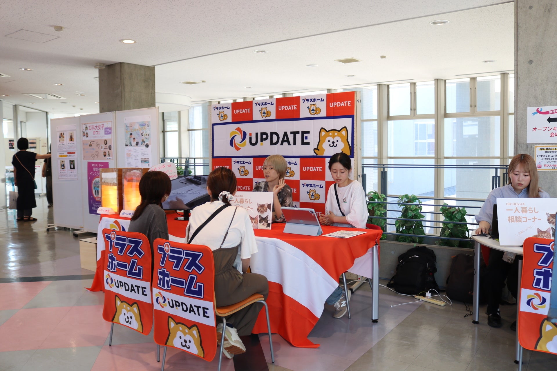 2025年8月に大学で開催されたオープンキャンパスにおいて、同大学の卒業生である当社社員4名が「初めての一人暮らし相談」ブースを出展しました。