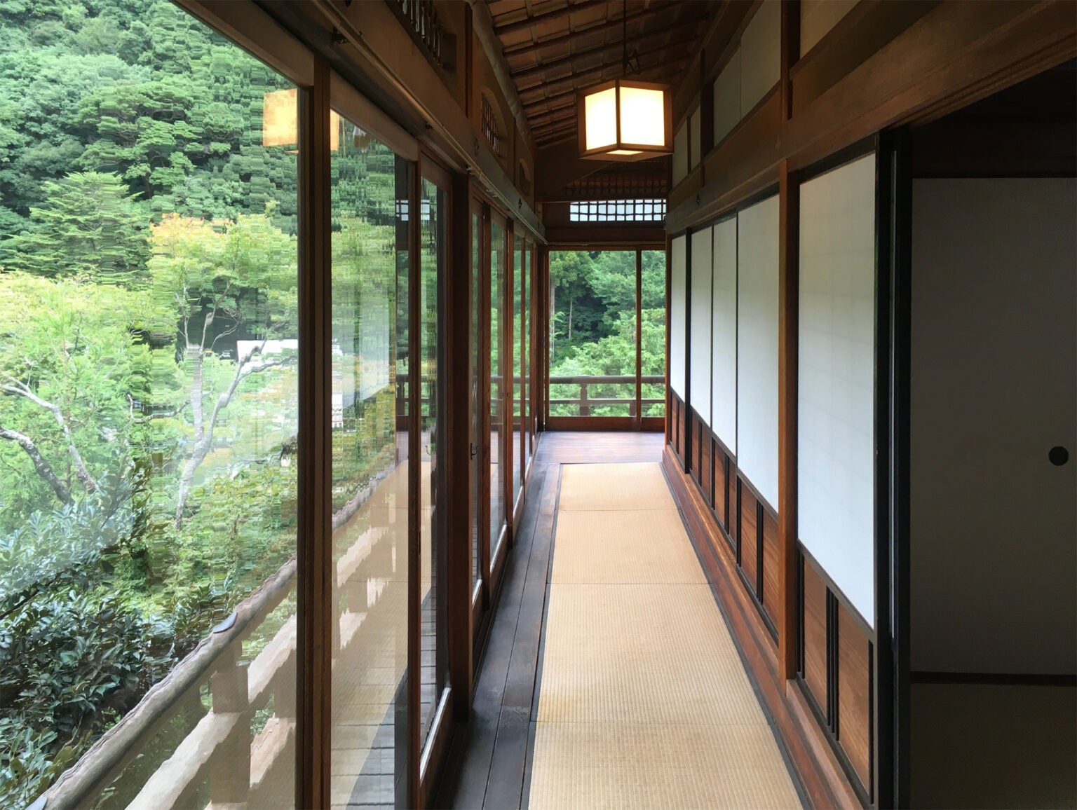 国登録有形文化財の水雲閣は皇族や文人も宿泊に訪れた旅館、寿亭の一室です。窓からは壮大な自然と御在所山頂へのロープウェイも眺められます。御在所は紅葉の名所でもあります。