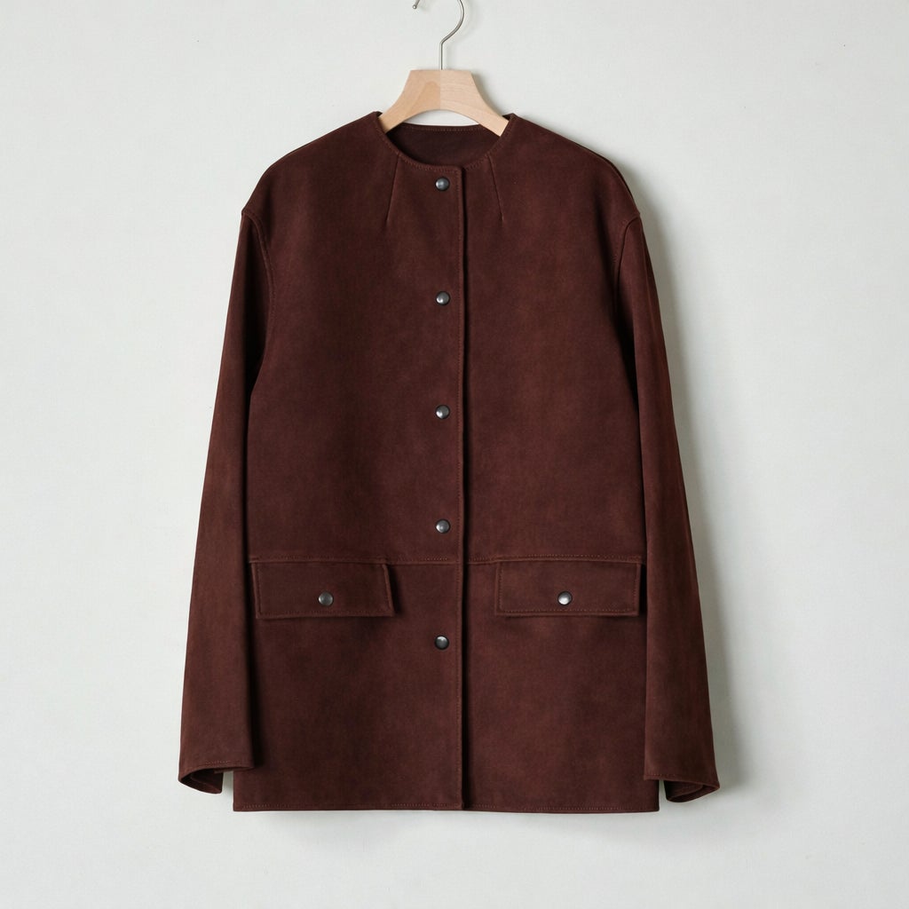 スエード素材を用いたカラーレスジャケットとトラウザー,トップスを展開いたします。