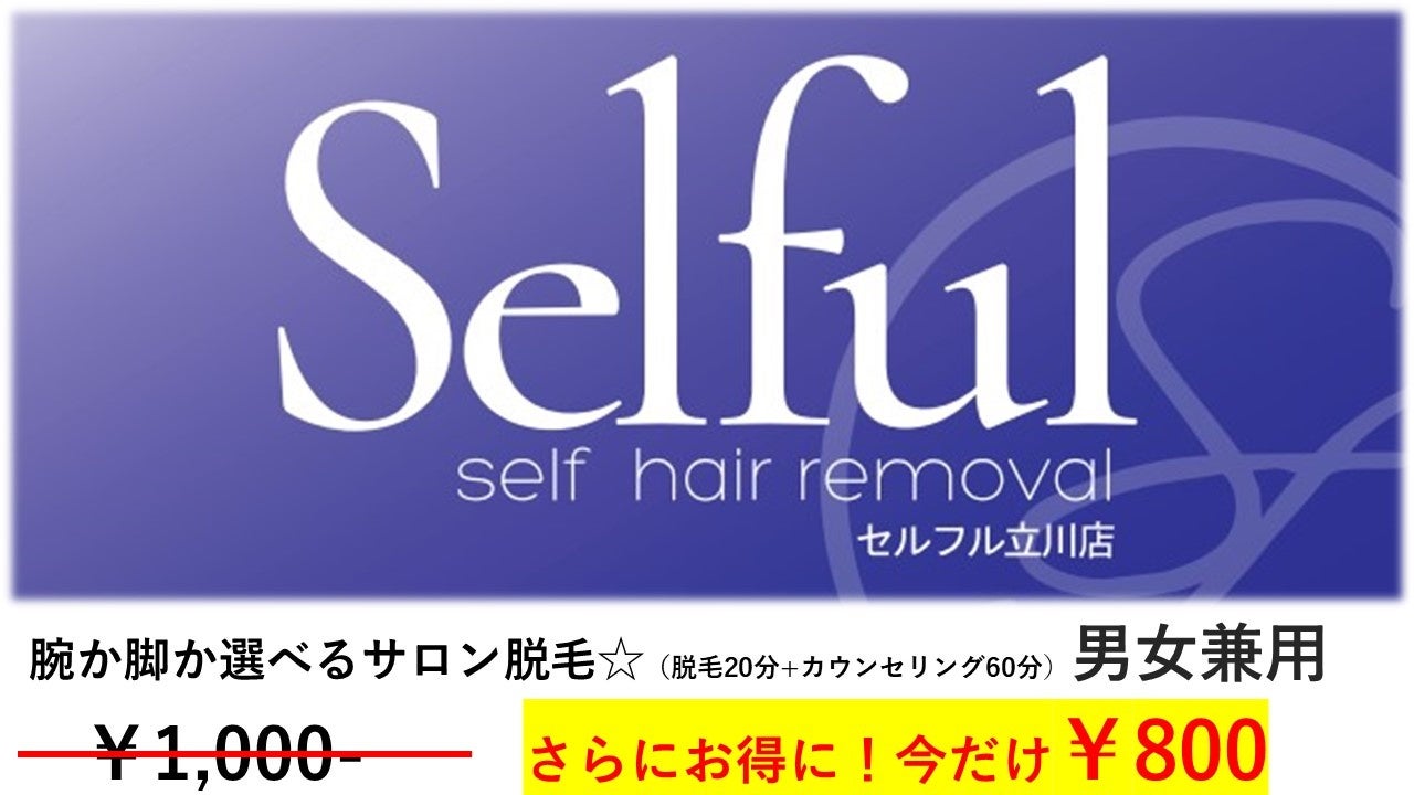 ※セルフル立川店は医療脱毛ではなく一時的な除毛を目的としております。
