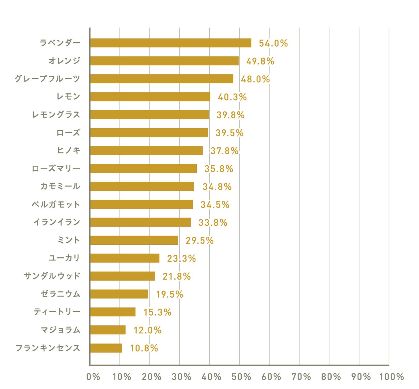 | 好きな香りは、 ・ラベンダーが最も多い ・オレンジ・グレープフルーツ・レモン・レモングラスが続く  |